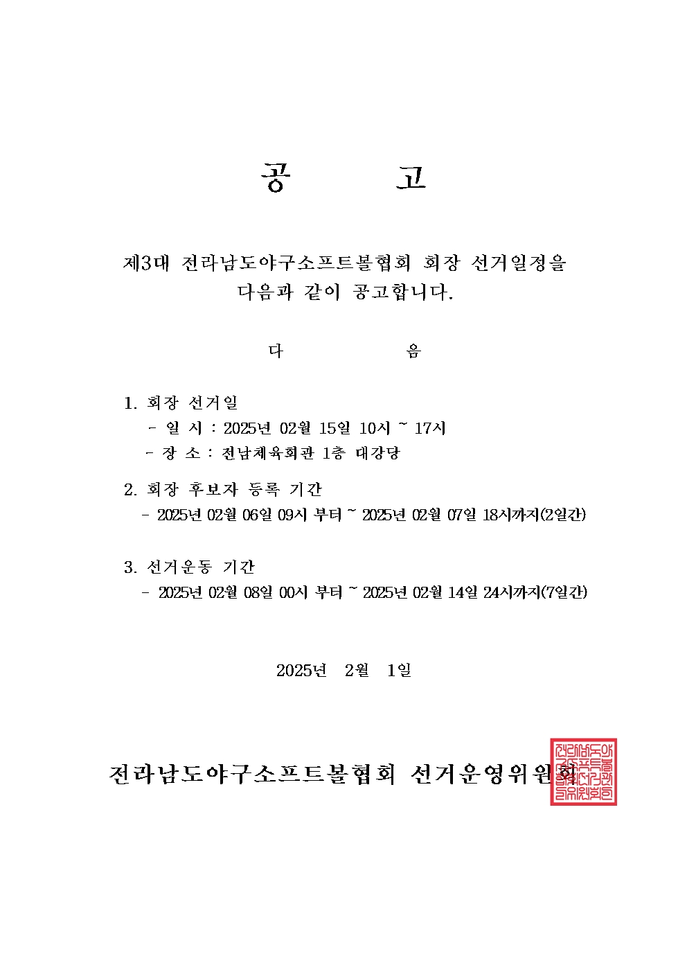 제3대 협회장 선거일정 공고